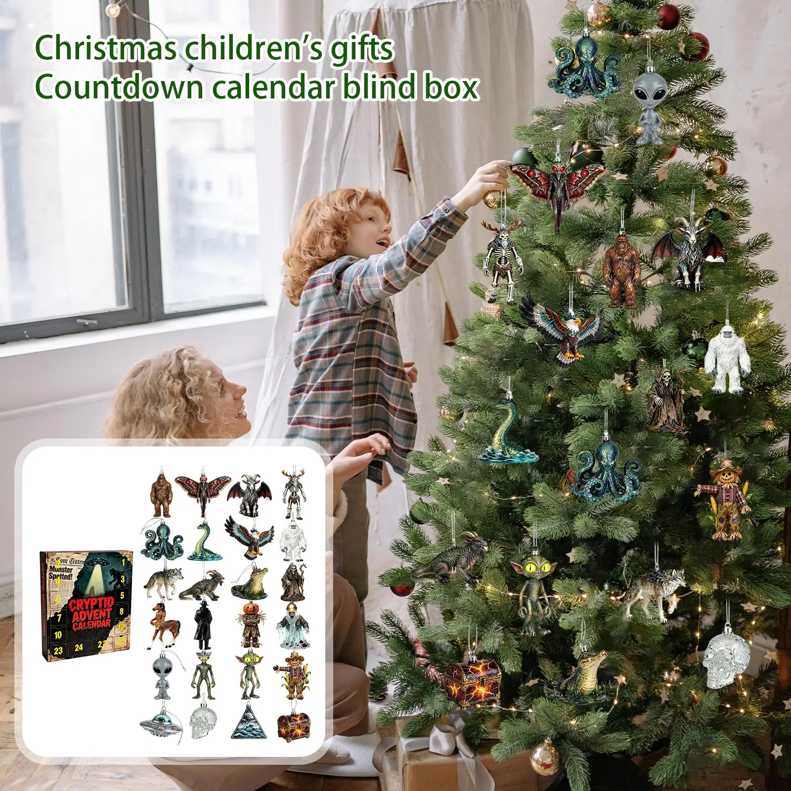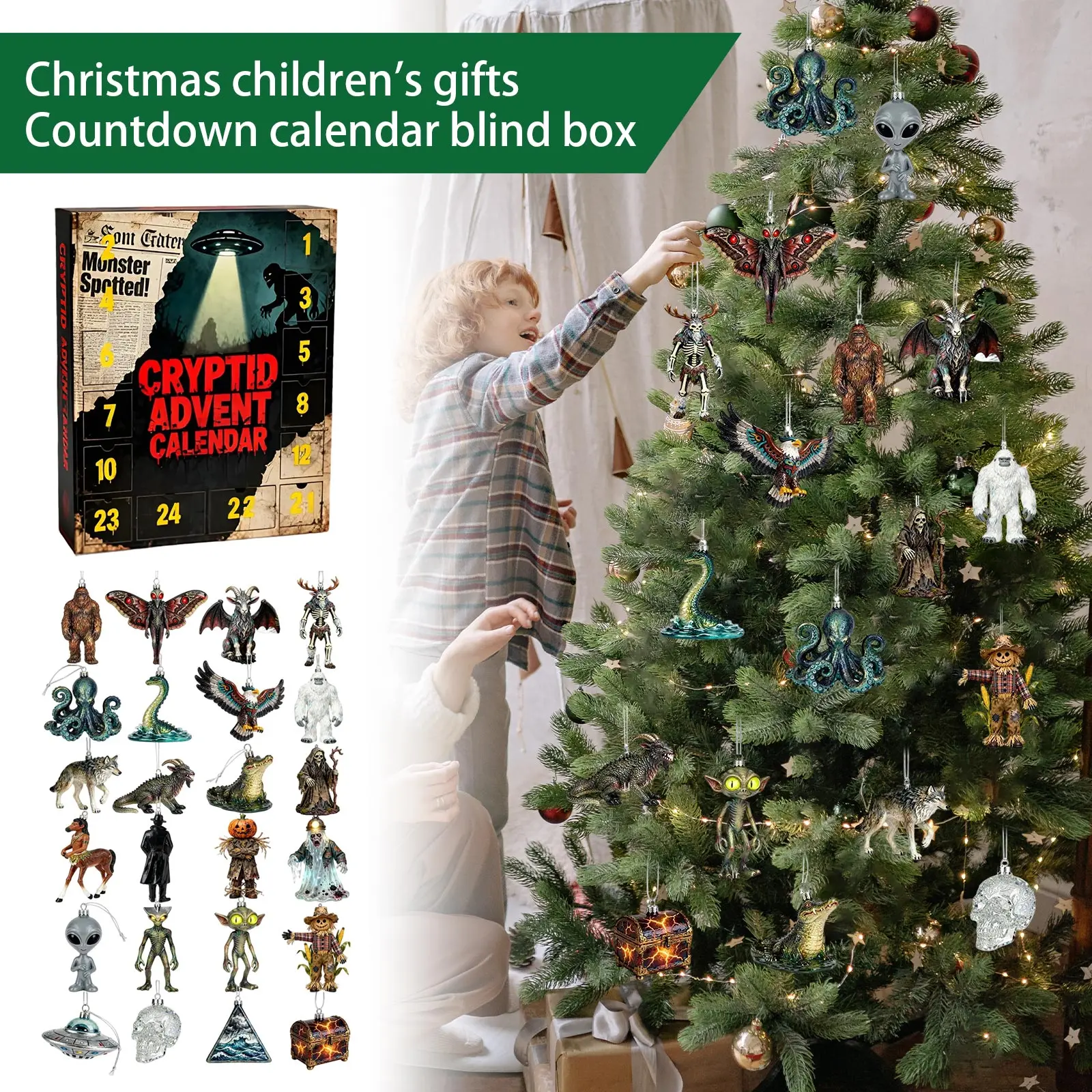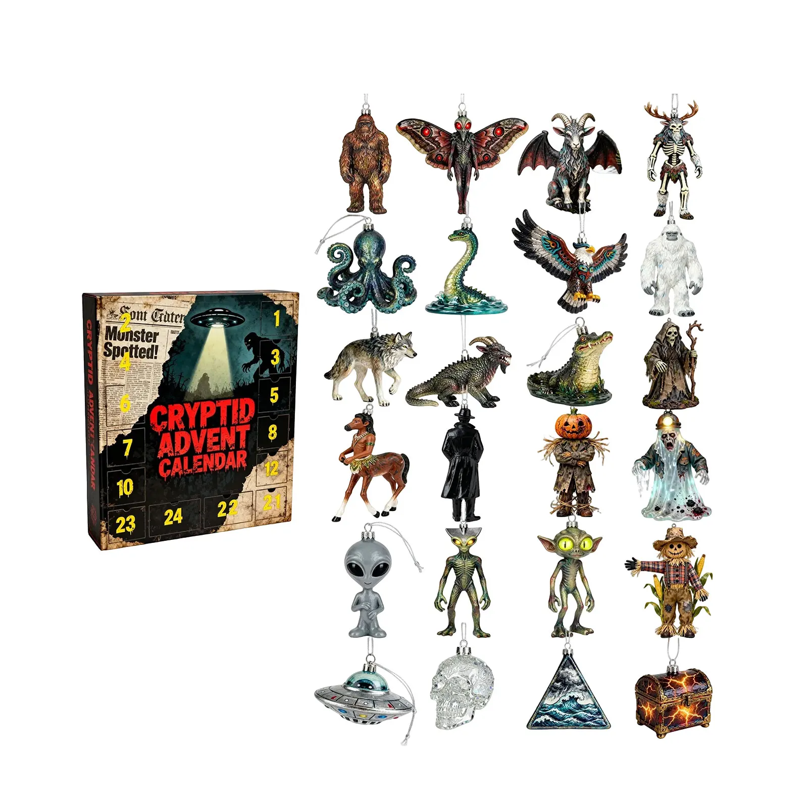 Mysteries of the Unknown, Cryptic 2D Acrylic Advent Calendar 2025, 24 Days of Monster Legends, Collectible Ornaments of Mythical
